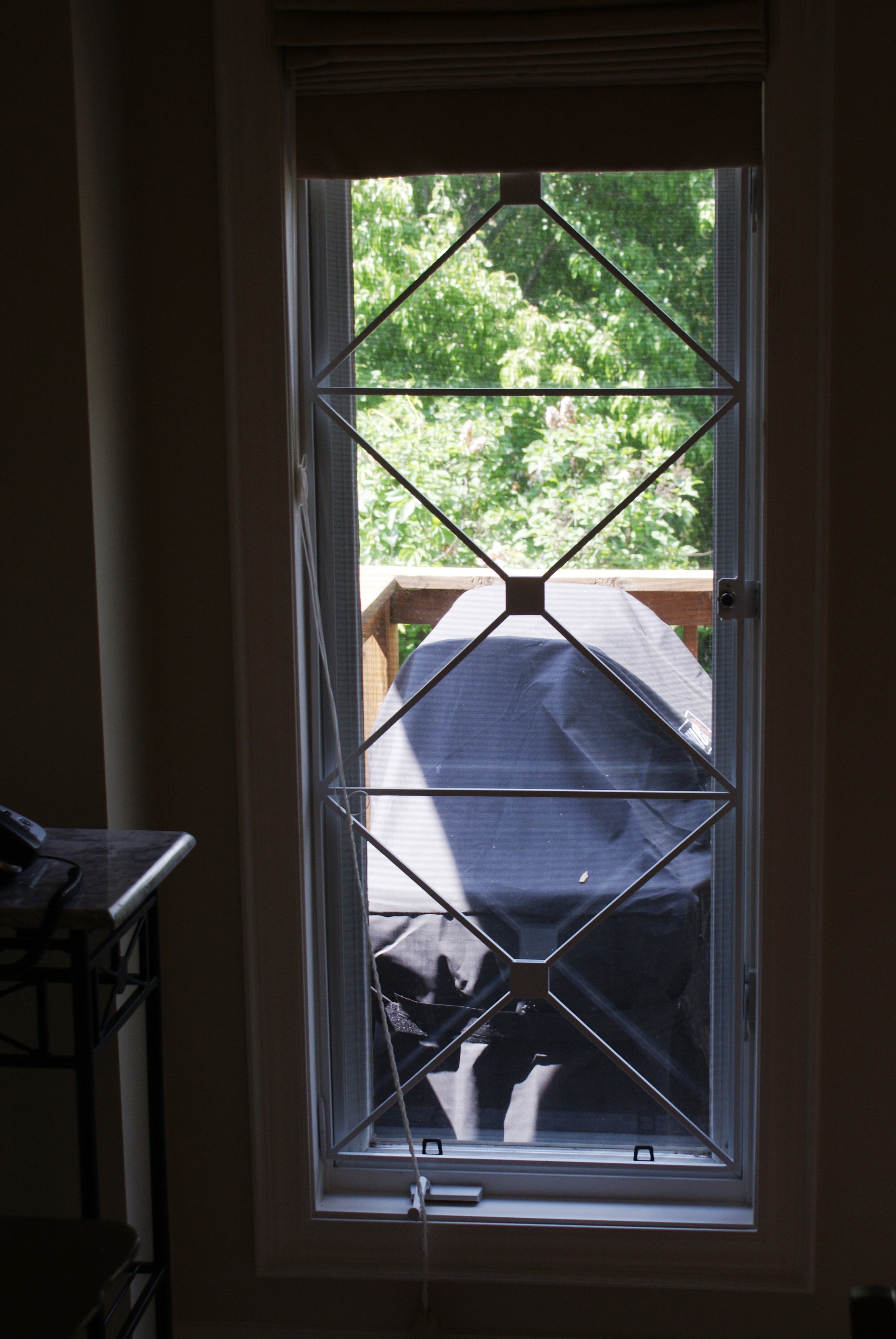 gates, window grills or bars (fixed or hinged window bars with locks)